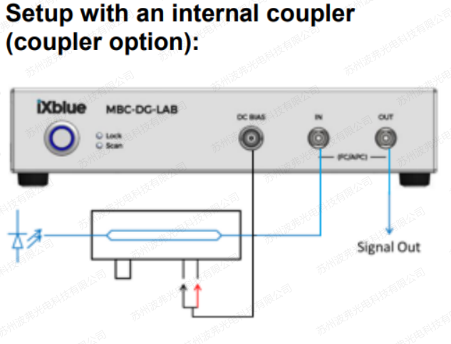为了调节并保持调制器输出状态,监控并补偿直流偏压的变化,我们需要从输出的光信号中采样一小部分(通常1%或10%),把它接入监控光电二极管(PD),再通过偏压控制器的反馈电路进行控制。在这方面,通常有两种方法可以获得来自铌酸锂波导调制器的监控光信号。第一种方法在调制器输出端口外接一个耦合器,以及提取一部分调制信号作为监视信号,尽管最终输出的使用功率根据耦合器的性能略有损失。另一个方法是在调制器内部集成一个PD,用于测量波导和耦合处的杂散光,这样的好处是不引起主输出信号的任何额外损耗。