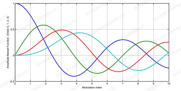 从理论出发,调制器输出电场贝塞尔函数如下: