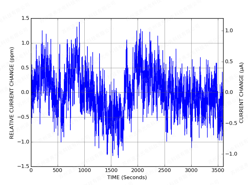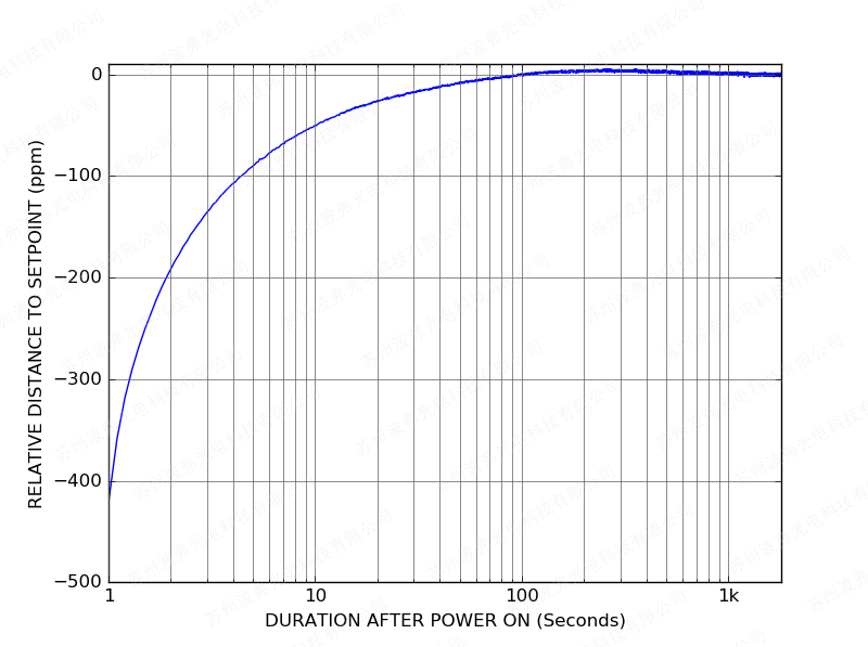 随后上电后,CTL101控制器只需一分钟即可将激光电流稳定在设定值的10 ppm范围内: