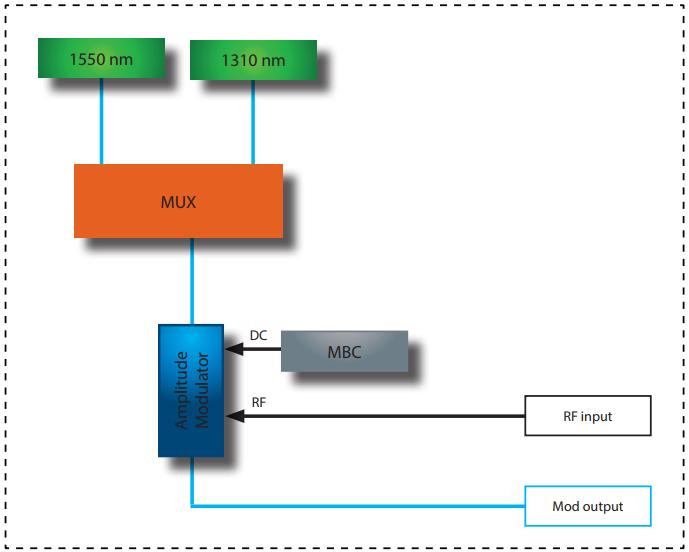 ModBox-VNA- 1310nm- 1550nm包含一个1310nm和1550nm低噪声激光源和一个基于带自动偏置控制电路的大带宽LiNbO3模拟调制器。